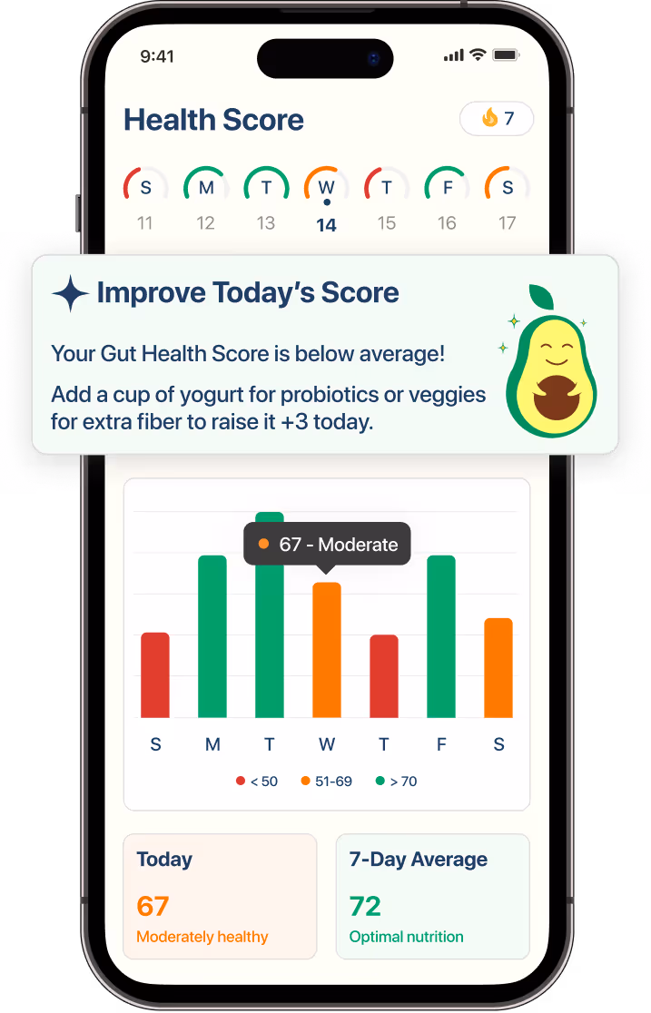 Stay consistent with daily tracking and tailored insights. SnackShot monitors your progress over time and suggests easy actions to improve your gut health and nutrition habits.