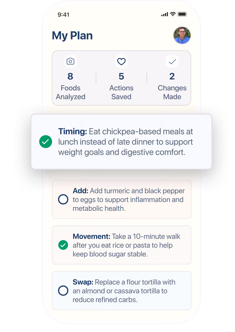 Snap any meal, snack, or drink and instantly see how it supports your specific health goals. Get clear, personalized guidance in seconds.